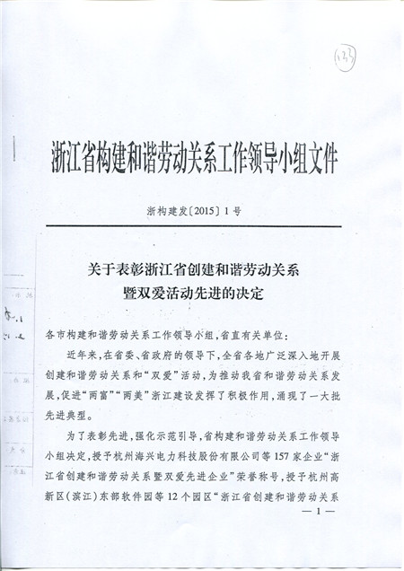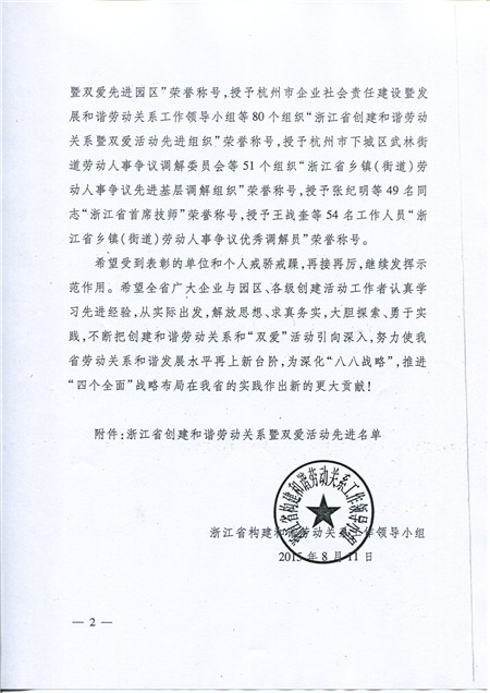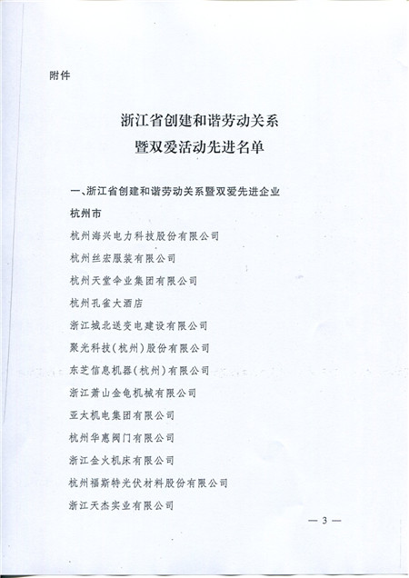喜訊:科潤公司被評為浙江省創(chuàng)建和諧勞動關系暨雙愛先進企業(yè)
