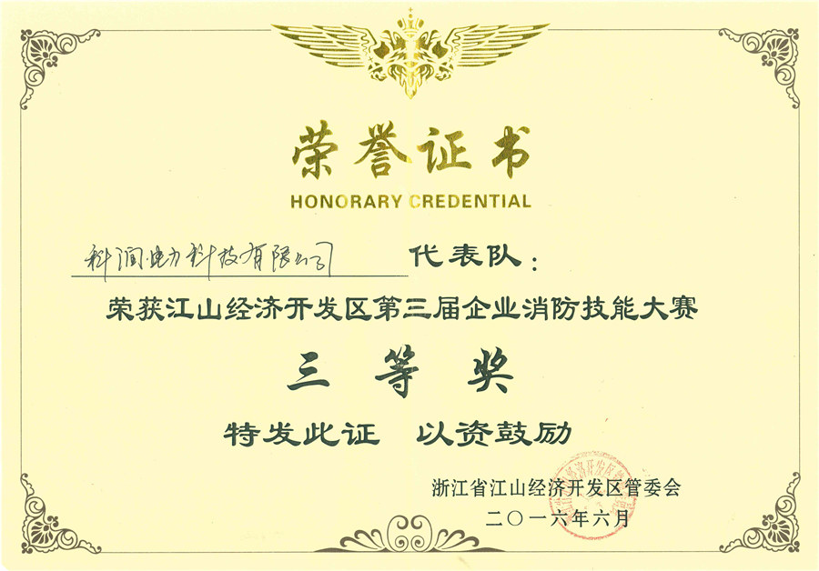 2016年6月25日上午8:00,由市總工會組織的江山經(jīng)濟開發(fā)區(qū)第三屆企業(yè)消防技能大賽在江東工業(yè)園興工路九陽光電公司舉行,我公司黨支部書記樂田光等5人組成的代表隊參加了本次比賽,最終憑借過硬的安全素質(zhì)和精湛的消防技能,榮獲大賽“三等獎”。