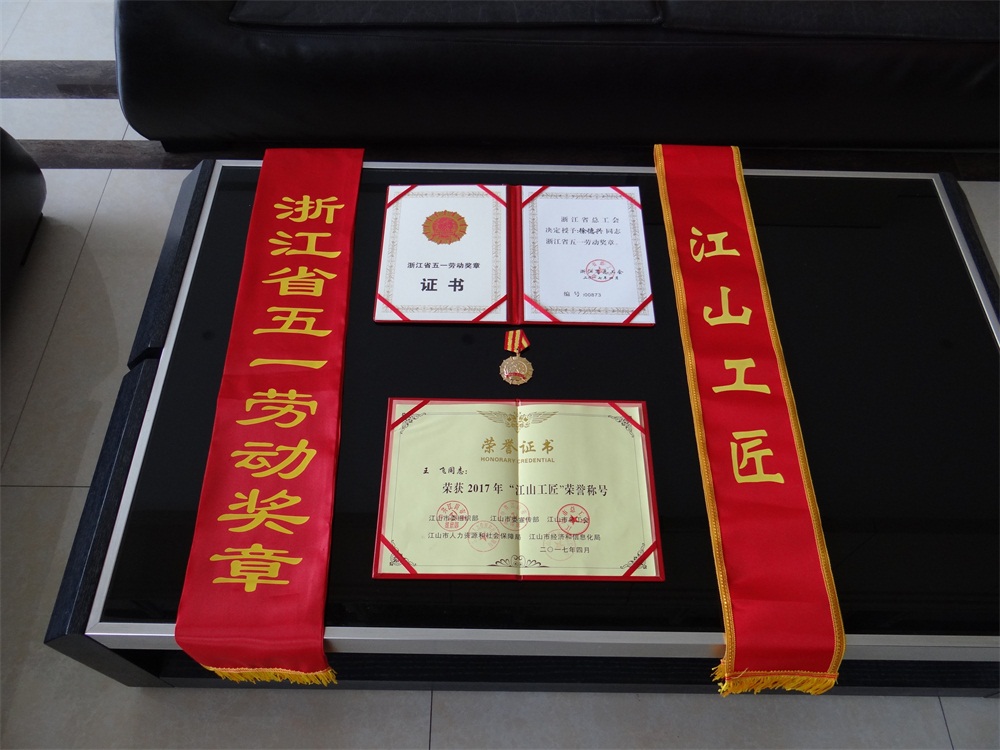 熱烈祝賀我公司員工王飛榮獲“江山工匠”榮譽稱號!!!