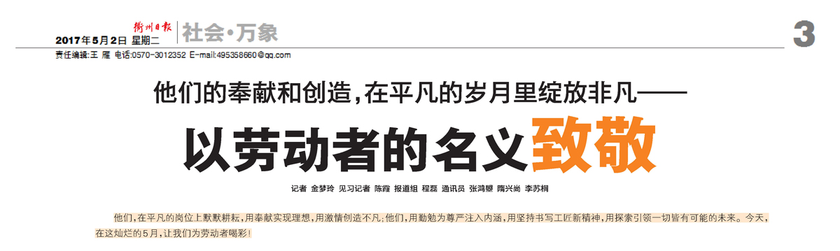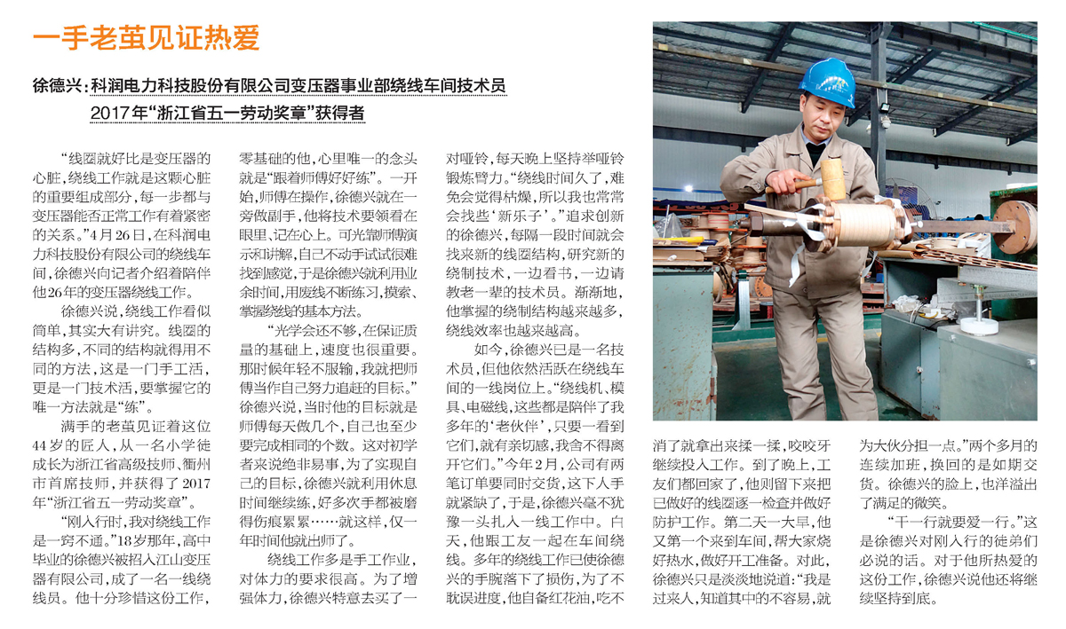 一手老繭見證熱愛(衢州日報采訪我司 2017年“浙江省五一勞動獎章”獲得者徐德興)