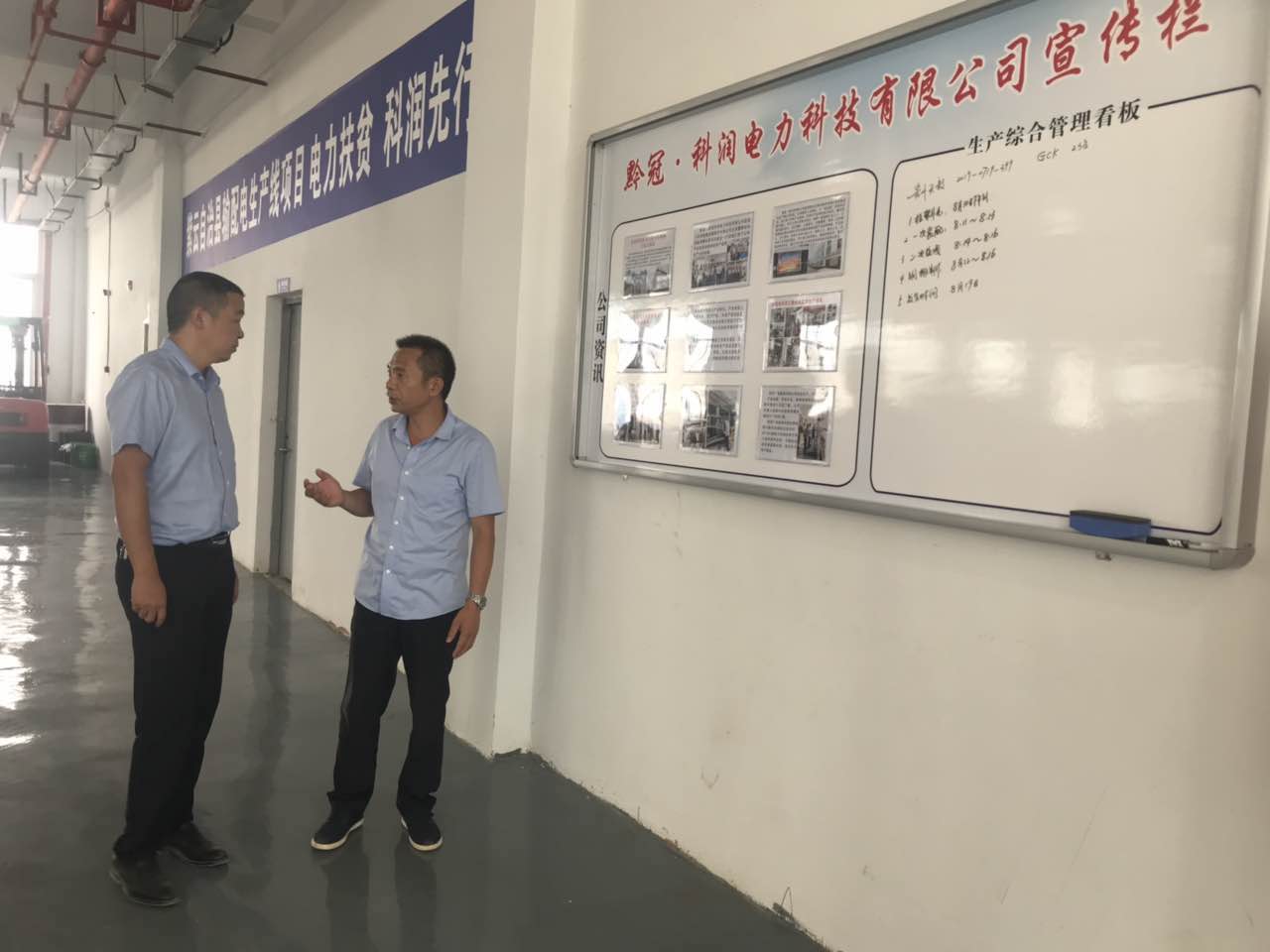 2019年8月17日上午,紫云縣工信局局長陳佳兵一行蒞臨黔冠·貴州科潤電力科技有限公司,紫云縣貓營工業園區行業幫扶點進行現場考察調研。