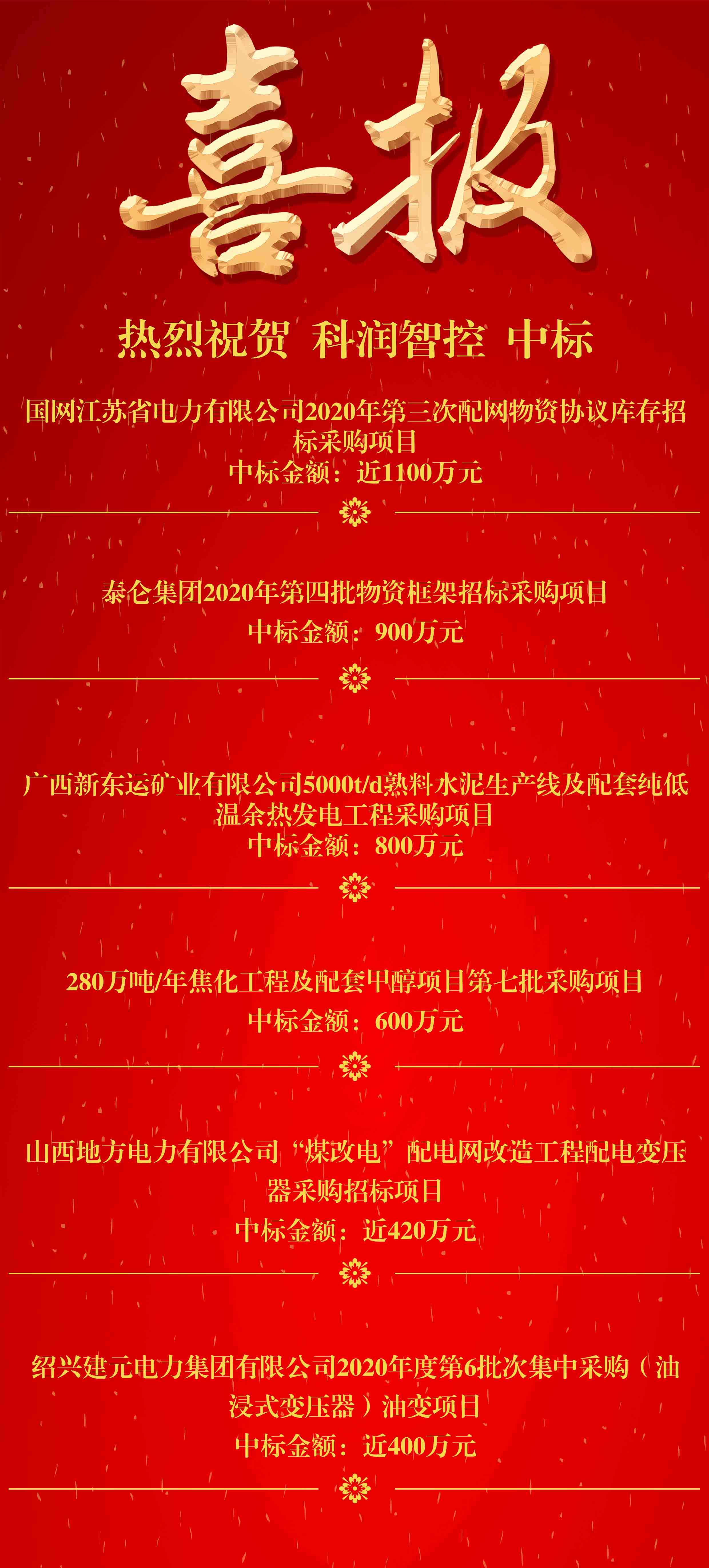 近期公司中標喜訊