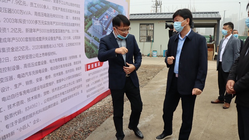 童煒鑫書記一行到達(dá)公司高端裝備產(chǎn)業(yè)園現(xiàn)場(chǎng)后,看展板、走廠房、聽介紹,實(shí)地了解高端裝備產(chǎn)業(yè)園推進(jìn)情況,并與董事長(zhǎng)王榮深入交流。他指出,要切實(shí)抓好項(xiàng)目的協(xié)調(diào)落實(shí)工作,確保項(xiàng)目按照建設(shè)計(jì)劃和時(shí)間節(jié)點(diǎn)抓緊建設(shè),爭(zhēng)取早日建成、早出效益,并對(duì)企業(yè)發(fā)展中遇到的問題和困難進(jìn)行了現(xiàn)場(chǎng)交辦。