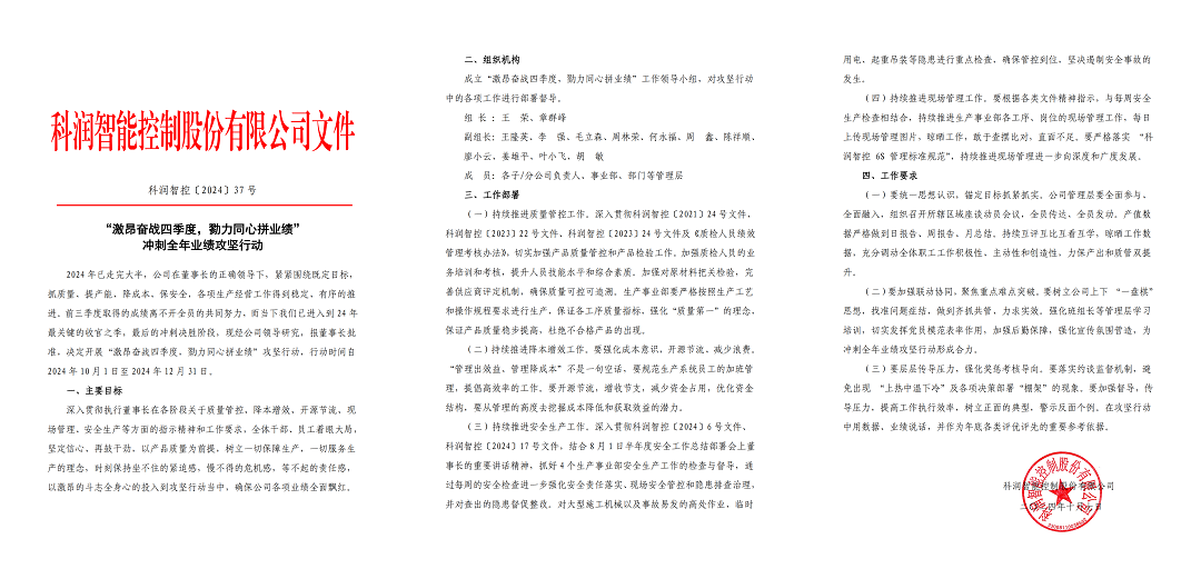 踏浪前行風正勁,不負韶華爭朝夕,2024年已到“掐表讀秒”的沖刺期、年度目標的決勝季,科潤智控已經吹響百日攻堅的號角。